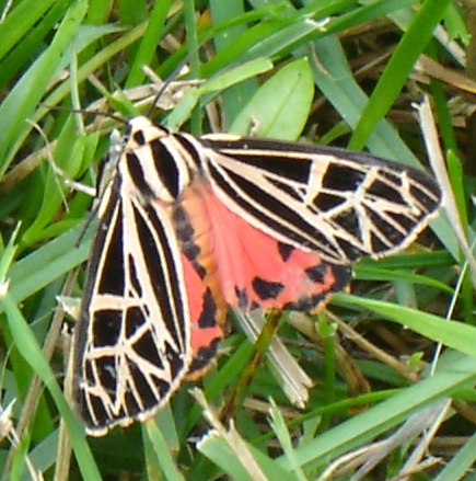 I love the practicality of the names that describe their appearance: Three-lined Potato Beetle, Tortoise Beetle, Fourteen-spotted Lady, Thinlegged Wolf Spider, White Admiral, Painted Lady, Pearly-eye, Zebra Caterpillar Moth, Twice-stabbed Stink Bug.